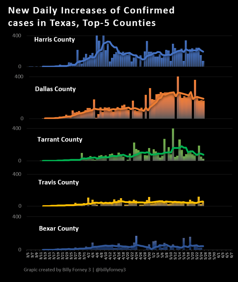 . UT Health Covid-19 Dashboard for R0 by county in Texas